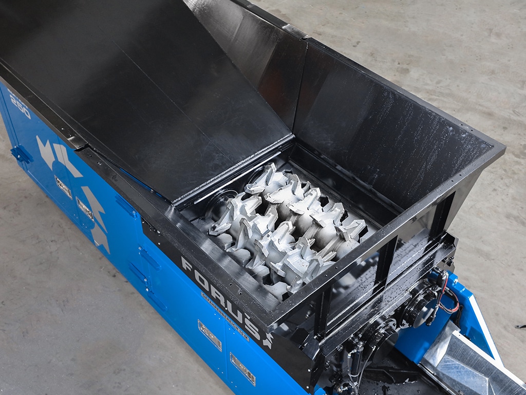 Le FORUS F25 d’Eggersmann est un pré-broyeur lent double-rotor, conçu pour broyer efficacement une grande variété de matériaux : ordures ménagères, encombrants, déchets commerciaux, films plastiques, papiers, DEEE, mais aussi déchets verts, rhizomes, et bois de démolition.